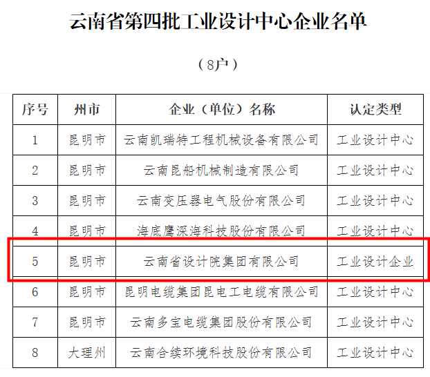 集團獲評云南省“工業設計企業”